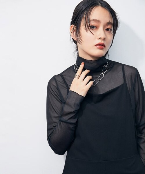 ◆2021-22秋冬◆ADAM ET ROPE' FEMME【Material】透け感のあるトリコット素材を使用。ストレッチ性のジャージー素材で、ビンテージ加工を施したナチュラルなシワ感が特徴。【Design】透け感のあるタートルプルオーバー。袖口にくしゅっとたまる形で着たり、もしくはニットやシャツなどのインナー使いをしたときに、袖口のレイヤードも楽しめるよう、長めに設定した袖丈が魅力。※繊細な生地を使用しているため、ながくご愛用いただけるよう、できるだけ伸びないように脱ぎ