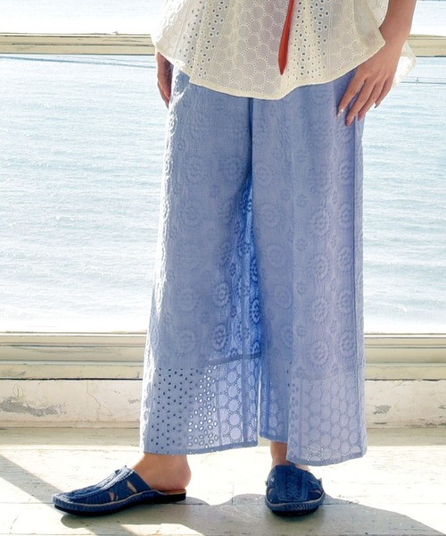 -Resort- Cotton Embroidery 贅沢な総刺繍が柔らかな雰囲気を引き出す。刺繍やレース生地を同色でまとめた、日常に取り入れやすいワイドパンツ。ワンピースの下にはいてもかさばりにくいストレートシルエット。風を通しやすいコットン素材で心地良さを感じられます。リラックスした1日を。 ・ウエストゴム仕様 MAX~106cm ※こちらの商品は1点1点職人による手作りとなります。その為、形や色合い・模様など若干異なる場合がございます。あらかじめご了承ください。 ※屋外での撮影画像は、光の当たり具合で色味・カラーが違って見える場合がございます。商品のカラーは、スタジオ撮影の画像をご参照ください。 Amina Collection Co.,LTD.