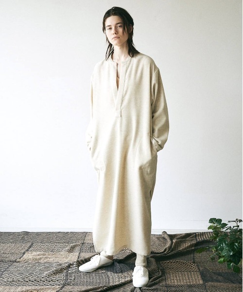 ※限定数に達し次第終了とさせていただきます。※完売した色/サイズはリクエストをいただいても生産が不可能な場合もございますので予めご了承ください。ロング丈のカフタンドレス。カフタンとは元々トルコの民族衣装で、ゆったりとした長い衣のこと。筒型のシルエットで、長い着丈や深いサイドスリットが特徴です。通常ニットに使用する柔らかいジーロンラムを横糸に用いて、生地の表面に起毛をかけた中肉のビーバー素材を使用しています。ジーロンラムはオーストラリアのジロン地方で産出されるメリノ種の生後6ヶ月以内に刈り取られたラムウールで、とても軽く美しい表面が特徴の生地に仕上げています。パンツやレギンスと合わせても、ワンピースとして一枚でも着用できるアイテムです。共布を使用したシャツジャケットもございます。こちらもどうぞ合わせてご覧くださいませ。・geelong lambs-beaver shirt jacket / WOFL-UW137検索番号:56562846(ZOZO)【unfil / アンフィル】ニットブランド「イリアンローブ」でデザイナーとして活躍した小松さおり氏が2017年にスタート。ブランド名のun fil(アン フィル)はフランス語で” 1 本の糸” を意味します。「ワードローブに贅沢な一品を」とコンセプトを掲げ、普遍的なデザインに対し、素材や配色によるちょっとしたユーモアをプラスしたコレクションを展開。ニットを中心に、良いと思える素材、シルエット、ディテールをしっかり考えて時間をかけて作り、着心地が良く気軽に着られるシンプルだけど特別な洋服を。【お買い物をよりお楽しみいただく為に】▼商品のお気に入り登録(♡マークをクリック)完売カラーの再入荷や、ラスト1点の通知を受ける事ができます。▼ブランドのお気に入り登録新商品や再入荷など、いち早くブランドのお得な情報を受け取ることができます。▼最短で翌日お届け商品をカートに入れた後、注文内容の確認ページで「即日配送」を選択していただければ、最短でご注文した翌日にお届け致します。【お知らせ】ページでも通知が確認できます。