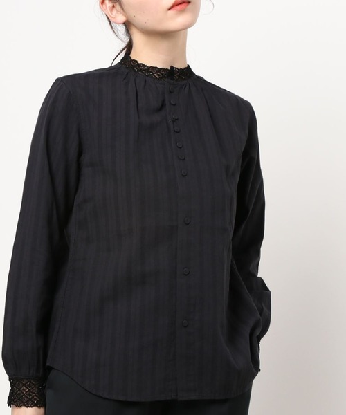 ~レースのフリルが女性らしいカラミドビーレースフリルシャツ~ <GRANDMA MAMA DAUGHTER(グランマ ママ ドーター)>より、レースのフリルが女性らしい印象を与えるシャツです。 生地とレースの色を揃えた統一感のある仕上がりが上品さのポイントに。 ネック回りにはギャザーを寄せて、シルエットに立体感を出しています。 本体には表情豊かな絡みドビー素材を使っています。カジュアルなパンツにもきれいめのスカートにも合うアイテムです。 【GRANDMA MAMA DAUGHTER / グランママドーター】 シンプルでさりげなく、時には可愛らしく。 素材感、着やすさを追求した定番アイテム、そしてシーズン毎に提案される流行をとらえながらもどこか懐かしさを感じる洋服たち。 袖を通して感じる着心地のよさ。 GRANDMA MAMA DAUGHTER 祖母から母へ、そして娘へ、 洋服作りの最初の一歩は祖母からもらった一枚のコート。 こうやって受け継がれていくような洋服が作りたい、 そんな思いをこめて作った グラン ママ ドーター。 < 便利なお気に入りの登録 > ◇商品お気に入りの登録 ♡をクリックして再入荷の通知や、ラスト1点の通知、 プライスダウンの通知がいち早く届くようになります。 ◇ブランドの登録 新商品や再入荷など、いち早くブランドのお得情報が届きます。 是非ご登録ください◎ ※お取扱いにつきましては、商品についている品質表示をご確認ください。 ※ご覧いただいておりますPC、スマートフォンの環境により、 若干製品と画像の色が異なる場合がございます。予めご了承下さい。