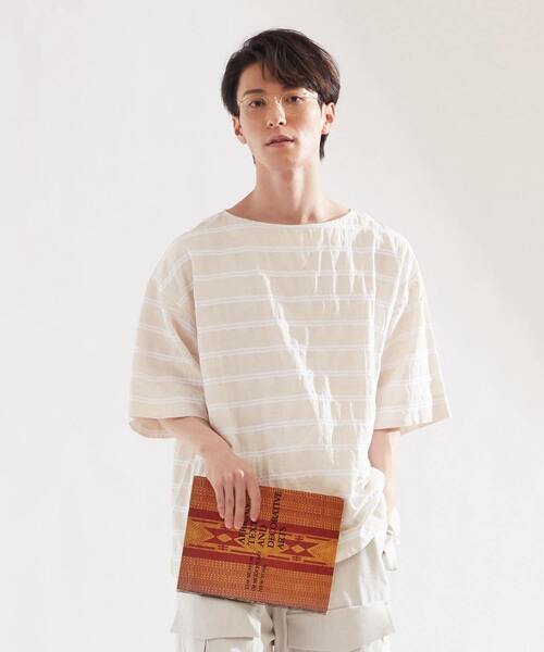 UNPERFECT ボーダープルオーバーTシャツ ■素材は国内の糸を国内の工場にて編み上げており、リネンと綿とレーヨンの混紡で独特のよれ感を出すため、ウォッシュ加工を製品にて施した生地です。 ■ボックス型のシルエットでボートネックデザイン。裾は少し絞れるボタンアジャストがついています。マリンの雰囲気を差し込める秀逸なボーダーTシャツです。 ■大きくワイドなボックス型のシルエットです。一枚でも重ね着でも着用いただけるユーティリティーなTシャツ。生地自体が伸びないのでワイドなサイズで仕上げております。 <サイズ表記> 3=M 4=L