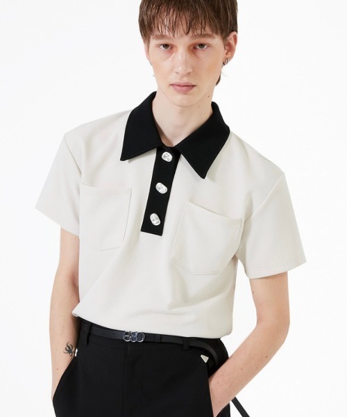 シンプルなボタンポロシャツ ボタンの形が個性的でポイントになります。 適度な厚みとハリ感柔らかな風合いで着心地抜群です。 オールブラック、クリームとブラックのバイカラーの2色展開でご用意しております。 ※着用画像はフラッシュの加減で実際の製品と色味等が異なる場合がございますので、詳細のズームアップ画像をご確認ください。 【ESC STUDIO】 ESC STUDIO(イーエスシースタジオ)はデザイナーSang Won Leeが手掛ける本国でも大人気ブランド。シルエットやカッティングを際立たせたアイテムが特徴的で、ディテールまでこだわったオリジナルのデザインが目を惹き、毎シーズンのコレクションに期待が高まる要注目ブランドです。 【SELECT BRANDS】 東京、大阪、名古屋、福岡にショップを構えるセレクトショップ "Never mind the XU”(ネバーマインドザエックスユー/エックスユー)と”Chikashitsu +”(チカシツプラス)のバイヤーが韓国、中国をはじめとしたアジア圏やヨーロッパなど世界各国から多彩なデザインを持つ新鋭ブランドを独自の感覚でセレクトしました。 ユニセックス、ストリート、モード、カジュアル、綺麗目、シンプル、リラックススタイルなど様々なスタイリングをお楽しみいただけます。 “自分らしさ” の表現が必ず見つかる。そんなラインナップで一期一会の高揚を感じながらお買い物をお楽しみください。 【お買い物ガイド】 ▼商品をお気に入り登録! 完売商品の再入荷やラスト1点の通知、セール開始時にお知らせ! ▼"XU/Chikashitsu+"をお気に入りブランドに登録! 新商品や再入荷など、ブランド最新情報をいち早くお知らせ! 是非、ご活用いただきお買い物をお楽しみください◎
