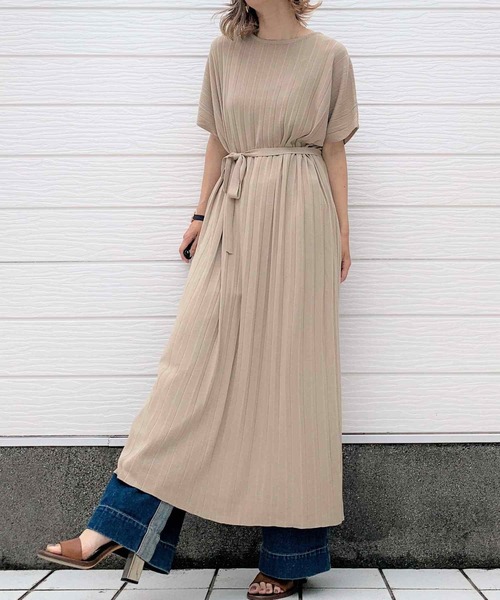 半袖のニットワンピースです。 ストライプのように見える編み地でシンプルな中にもデザイン性をプラス。 同素材を使ったベルト付きなので、ウエストマークしてメリハリのあるスタイリングにもできます。 ひんやりと涼しいタッチの糸を使用しているので、ニットでも暑さを感じさせないワンピースです。 《インフォメーション》 ◆商品のお気に入り登録 完売していても再入荷時に再入荷通知を受け取ることができますので、是非ご登録ください。 ◆ブランドのお気に入り登録 新商品や再入荷などの情報を受け取ることができますので、是非ご登録ください。