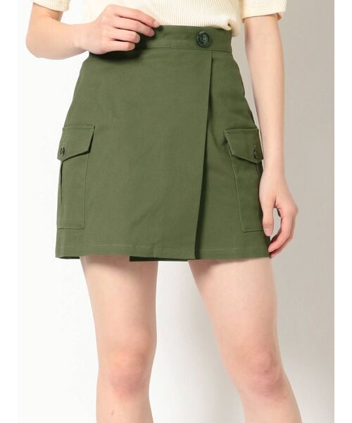 コットン素材を使用したラップ風デザインのミニスカートです。 裏地はインナーショートパンツタイプになっており、ミニ丈でも安心のデザインとなっています。 両サイドのパッチポケットがデザインポイントとなったカジュアルミニスカートです。