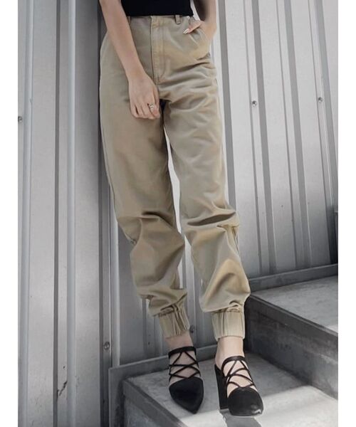 薄手の生地を使用したジョガーパンツです。今までに展開したことのない新しい形です。裾にゴムが入っているのでスッキリめなシューズとの相性がいいです。腰回りはゆったりしたサイズ感なので履き心地がいいです。ポケットや付属塁なども普段のデニムとは違う少し綺麗めな仕様にしているので、カジュアルすぎずに着用できます。