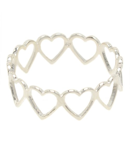 ハートモチーフがぐるりと連なったフルエタニティリング。シャープな輝きを放つシルバーが大人の女性にピッタリ。 ラブリーなハートモチーフも繊細な仕上がりで、ほかのリングとの重ねづけもお勧め。大人かわいい手元を演出してくれます。 店舗へお問い合わせの際は下記品番をお伝えください。 品番:73-22-0333-058