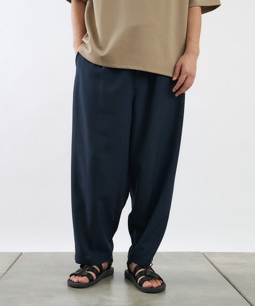 【夏の風物詩のお供に。リネンライクワイドパンツ】 サラッとした着心地と麻見えするポリエステル素材を使用したワイドパンツ。 汗や湿気などの水分を素早く吸収し、乾燥させる「吸水速乾」に優れた素材を使用しており、梅雨の時期や暑い夏の季節にも快適に過ごせます。 現代版の浴衣や甚平をイメージしており、ラフなシルエットに上品さを兼ね備えたデザイン。 同素材のシャツジャケットと合わせれば、現代版の甚平風コーディネイトが完成します。 ゆとりのあるワイドシルエットに仕上げ、リラックス感を演出。 セットアップはもちろん、単品使いでもバランスよく着こなせます。 ・じめじめした季節でも快適に過ごせる「吸水速乾」機能搭載 ・ご自宅でのお手入れが簡単な「EASY CARE」素材使用 ・シャツジャケットと合わせたセットアップコーディネイトがオススメです 同素材のシャツジャケットと合わせることでセットアップコーディネイトの完成。 さらに清涼感漂うコーディネイトが完成します。 CMA2011504A0007 KINAGASHIシャツジャケット 【KINAGASHI】 旅行にも行きにくいし、おうち時間が多くなりがちで、パッとしないとお想いの夏休み。 でも、日本には古くから身近に素敵な夏の風物詩がたくさんあります。 風鈴、かき氷、セミの鳴き声、夕涼み、花火、、、今一度昔ながらの日本の夏を自宅や近所で 楽しんでみませんか?そんなお供に COLONY 2139 がお届けするK.I.N.A.G.A.S.H.Iシリーズ。 麻のような清涼感のあるポリエステル素材を使用した風通りが良いアイテム達、なんとなく 現代版の浴衣や甚平のような着こなしで、今年は涼んでみませんか? 【QUICK DRY】 洗濯時や汗をかいた際にも乾きやすいクイックドライ機能の付いた吸水速乾素材を使用しております。 梅雨時期や暑い季節にも快適な着心地をキープ。 お洗濯後の乾燥・部屋干しでの渇きもスムーズです。 【EASY CARE】 着用時・洗濯時にしわになりにくい生地を使用しており、ご自宅でのお手入れが簡単です。 洗濯時はクリーニングネットをご使用し、弱水流コースを選択して下さい。 短時間脱水をお勧め致します。 洗濯後は軽いアイロンがけで着用頂けます。 着用スタッフ 177cm 着用サイズ L ■素材・洗濯について ポリエステル100% 洗濯:手洗い可 ※着用、お取り扱いの際は、商品についている品質表示とアテンションタグを必ずご確認下さい。 ※商品タグに記載されている商品名がWEBでの表記名と異なる場合があります。 ※画像の商品はサンプルです。実際の商品と仕様、加工、サイズが若干異なる場合がございます。 ※照明の関係により、実際よりもやや明るく見える場合がございます。またパソコンなどの環境により、若干製品と画像のカラーが異なる場合もございます。予めご了承くださいませ。 【お気に入り登録】してお得な情報をCHECK!! ・「商品のお気に入り登録」で再入荷通知や、ラストの通知、セール通知も受け取ることができます。 ・「ブランドのお気に入り登録」で新商品や再入荷など、お得な情報を受け取ることができます。 __________________________________________________________