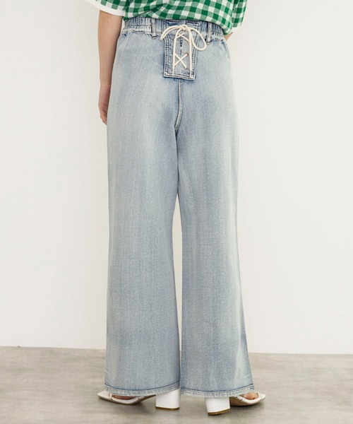 人気デニムが2サイズ展開に♪ こだわりが詰まったダブクロの人気デニムがS・Mの2サイズ展開になって登場です。サイドには裾スリット、バックにはレースアップと細やかなデザインがデニムパンツでもカジュアル過ぎず、女性らしさのある着こなしに。ウエストゴムなので、着脱しやすく窮屈感なく着用できるのも嬉しいポイント。今まで、サイズ感が気になる方も、是非自分ジャストのサイズでゲットして♪。 スタイリング レースアップデザインがあるので、トップスをインしたスタイリングがおすすめ。スタイルアップ効果も◎。ベーシックにTシャツを合わせてインしたスタイルでシンプルに決めてもかっこよく仕上がります。足元はブーツなど、ヒールのあるものを合わせるのがおすすめです。 ■STAFF着用レビュー ○148㎝スタッフ Sサイズを購入。ウエストインした着こなしがおすすめです! 148cmでも長すぎず、スリットが入っているのでキレイに着用できます。 ○152㎝スタッフ Sサイズを購入。私の身長だとSサイズでぴったりで、ベルト無しでも大丈夫でした! 後ろはレースアップになっていて、イマドキな着こなしもできます。 ○156㎝スタッフ Mサイズを購入。程よくワイドでトップスをインして着ると脚長効果があります。 裾が少しギリギリですが、太もも周りやウエストが気になる方はMサイズがおすすめです! ○163㎝スタッフ Mサイズを購入。160cm前後の方はMサイズがおすすめ! お尻や太ももまわりに程よいゆとりがあって、とても履きやすいカタチです。 ※商品の色はimageの着用写真ではなく、商品写真をご参照ください。 -------------------- 裏地:なし 透け感:エクリュはややあり 厚さ:普通 伸縮性:あり -------------------- 【お買いものにおすすめの便利機能!】 ★商品のお気に入り登録 完売カラーの再入荷の時や、ラスト1点の時、セールになった時にお知らせします。 ★ブランドのお気に入り登録 商品や再入荷、セール情報など、いち早くブランドのお得な情報を受け取ることができます。 ぜひご活用ください!