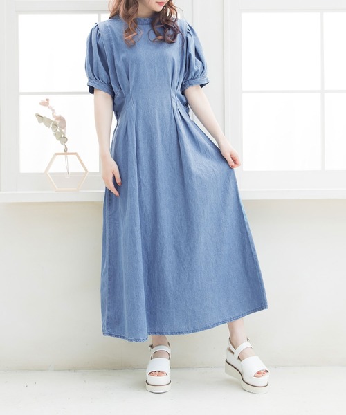 ボリュームのある袖と裾まわりが魅力的なデニムワンピース。ボトルネックの衿元と長めの丈感が大人っぽく、程よくガーリーなデザインに仕上げました。ウエストまわりのタックデザインでスタイルアップ効果もあり◎薄めのデニム素材を使用しているため重たく感じず、暑い季節でも爽やかに着用できます。爽やかなブルー、上品なインディゴに、存在感あるブラックの3色をご用意しました。厚底サンダルやスポーツサンダルでカジュアルダウンさせても、ヒールを合わせて上品に着てもかわいい1枚です。※ご覧のモニター環境や撮影環境により実際の商品と多少色味が異なって見える場合がございます。ご理解の程よろしくお願いいたします。【お買い物をよりお楽しみいただく為に】▼商品のお気に入り登録をおすすめします♡をクリックしてください。完売カラーの再入荷や、ラスト1点の通知、セールの際の通知を受ける事ができます。ブランドのお気に入り登録もご一緒にお願い致します。 <価格改定のお知らせ> 原材料高騰に伴い2022年5月12日より価格改定をさせて頂きます。 ご了承下さいますよう、お願い申し上げます。