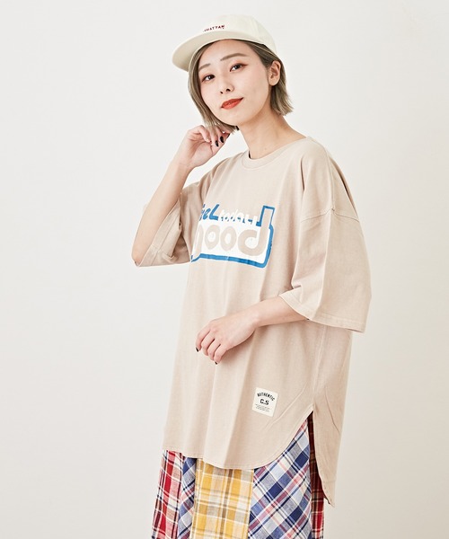 ■レトロポップなくすみパステル、配色ロゴTシャツ スモーキートーンの味わい深いパステルカラーでまとめたレトロポップなロゴTシャツが登場。 1枚でコーデが決まる夏だからこそ、大胆な配色プリントでアメカジ気分を盛り上げる事間違いなし。 古着屋さんで見つけたようなひび割れたカレッジプリントの風合いが、ずっと前から愛用していたかのようなユーズド感を表現しました。 ボディカラーによってロゴプリントの色をそれぞれセレクトしているのも見逃せないポイントです。 ■毎日着たいラフなビッグシルエット ストンと着るだけでコーデが決まるチュニック丈は、忙しい朝やコーディネートに悩んだときに頼りになる優秀アイテム。 裾はお尻まわりを自然にカバーしてくれる前後差のあるラウンド裾なので、パンツスタイルも安心して合わせられます。 ひじにかかる長めの半袖と、体のラインをはっきりさせないメンズから借りたようなサイジングが、ジェンダーレスでこなれたカジュアルに。 肩のラインを拾わないドロップショルダーが、夏のリラックスコーデにぴったりです。 ■着心地の良さの秘密は「ピグメント染め」 ビンテージの質感と、初めて着るときから肌に優しい風合いを生み出します。 ずっと前から愛用していたかのようなディテールが、ほかでは味わうことのできないこだわりのポイントです。 届いたその日からラフでこなれた古着MIXコーデが完成します。 ※モニター・環境等により実際の商品と多少色味が異なって表示される場合がございます。予めご了承をお願い致します。 【アイテムカテゴリ】 トップス Tシャツ プルオーバー tee ビッグTシャツ ロゴTシャツ 半袖Tシャツ 【デザイン】 配色 春カラー 春色 夏カラー 夏色 パステルカラー スモーキーカラー くすみカラー ヴィンテージ加工 ビンテージ加工 古着風 ユーズド風 英字 英語 カレッジロゴ ロゴプリント ひび割れプリント クラックプリント 【シルエット】 ミディアム丈 ミドル丈 ロング丈 チュニック丈 ドロップショルダー ビッグシルエット オーバーサイズ 大きいサイズ ゆったり 大きめ 楽ちん 動きやすい Mサイズ フリーサイズ クルーネック 丸首 半袖 半そで ショートスリーブ ハーフスリーブ 【生地・素材】 コットン 綿 カットソー 天竺 【ファッションテイスト】 大人カジュアル アメカジ アメリカンカジュアル ペアルック おそろい アウトドアファッション ピクニック レジャー キャンプ ハイキング スポーティファッション スポーツミックス ストリートスタイル ストリートファッション ストリート系 スケータースタイル 韓国コーデ 韓流 フェス ライブ ガーリィ ガーリー メンズライク 【シーズン】 春 春夏 夏