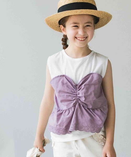 柔らかなカットソー素材に、レースのフリルがついたキャミソールが重なるドッキングアイテムです。1枚でコーデの主役になる本格派デザインで、トレンドのレイヤードスタイルが楽しめます。肌に触れる部分はカットソー素材で着心地抜群。おでかけにはもちろんお着替えも楽チンで、おしゃれな通園通学着としてもぴったりです。生産時期により色味が若干異なる場合がございます。ご了承ください。