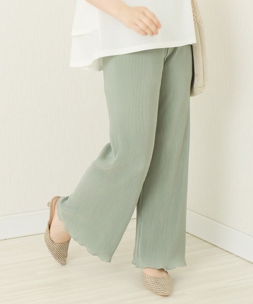 大人気の裾メロープリーツパンツ。 小さめなプリーツ加工が旬なムードを演出するパンツです。 裾部分はメロウデザインで可愛く仕上げ、こなれた着こなしを演出。 タテのラインを強調したプリーツは、脚をスッキリとみせ、細見え効果が期待! ウエスト部分はゴムでストレスフリーな楽ちんでリラックスできます。 サラッとしているので肌にはりつきにくく、シワにもなりにくい。 シンプルなデザインで、どんなトップスとも◎ 今季のトレンドアイテムです。 ※屋外の光や照明の当たり具合、パソコンなどの閲覧環境によって実際の色味と異なって見える場合がございます。 予めご了承ください。