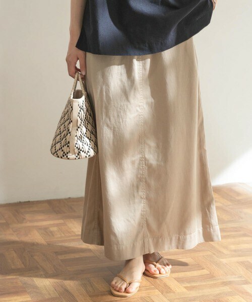 ナチュラルな風合いと美しい表面感が特徴のセルロース素材を使用したスカートをご用意。 硫化染め+バイオ加工で仕上げることでヴィンテージな雰囲気を漂わせながらも、ツヤのある表面がきれい目な着こなしにもマッチします。 とろみのある質感が肌離れしやすく、真夏に嬉しいリラクシーな着心地を楽しんでいただけます。 広がり過ぎないAラインシルエットを採用し、バックスリットを施し足捌きも考慮。 着回しに重宝する定番の二色を展開しました。