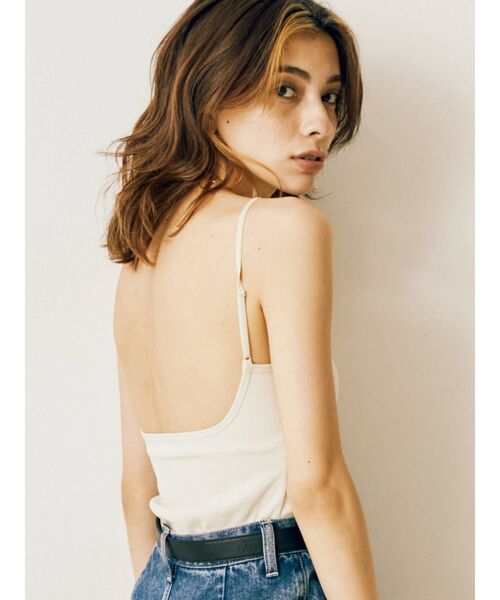 【背中見せトップスのインナーとして】【カップ付き】 ■商品ポイント ・パッド付き ・バックオープンで背中見せITEMのインナー使いに◎ ・華奢ストラップでチラ見えも◎ ・伸縮性のあるテレコ素材 -------------- 透け感:なし 裏地:なし 生地:テレコ素材 伸縮性:あり パッド:あり -------------- パッド付きのショートキャミソール。ストラップが華奢で女性らしい仕上がりです。バックオープンなので背中あきのトップスのインナーにも合わせやすいです。伸縮性のある肌触りの良いテレコ素材を仕様しているので肌に触れてもストレスフリーに着用できます。