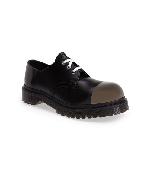 A mirror-shine steel cap toe and signature lugged sole dial up the street cred of a low-cut leather boot. Leather upper and lining/PVC sole. By Dr. Martens; imported. Men's Shoes.