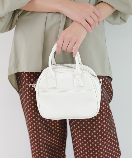 デイリーに使いやすい、コンパクトなシルエットのミニボストンバッグ。取り外し可能なショルダーストラップ付きなので、斜めがけもOKな2WAY仕様です。小ぶりながらもしっかりマチがあり、ポケットも充実しているので収納力バツグン。