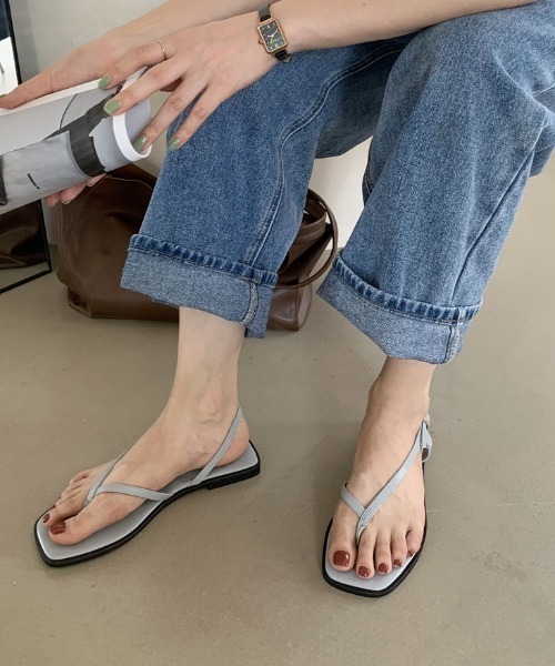 " 程よいシンプルさが今っぽい "❖point楽ちんなワンマイルシューズとしてデイリーに履いていただけます。リラックス感がありつつも、シックなデザインとカラーでカジュアルになりすぎないのも魅力。ストラップがついているので、固定され安定感もあります。どんなコーデにも合わせやすい、フラットサンダルです。シンプルなデザインなので、幅広い方におすすめのサンダルです。❖styling忙しい朝や、迷ったときはこれ!シンプルなコーデから、ストリート、フェミニンまでどんなコーデにもマッチ◎この夏一足は持っていたい、おすすめアイテムです。❖colorシンプルな夏っぽいホワイト合わせやすく使いやすいブラック落着き感のあるベージュ涼しげなブルー の4色展開です。韓国ファッションが好きな方は、必見です!【サイズについて】下記を目安にお考えください。 M:23.0-23.5cm L:24.0-24.5cmこちらの商品はセレクト・インポートアイテムのためサイズ感が日本規格のものとは異なります。お買い上げの際にはサイズチャートでご確認頂きますようお願いいたします。【お買い物をよりお楽しみいただくために】●商品のお気に入り登録(ハートマークをクリック)完売カラーの再入荷や、ラスト1点のお知らせ、セール情報などの通知を受け取ることができます。●ブランドのお気に入り登録新商品や再入荷など、お得な情報をいち早く受け取ることができます。●最短で翌日お届け商品をカートに入れた後、注文内容の確認ページで「即日配送」を選択していただければ、最短でご注文した翌日にお届け致します。是非ご利用頂き、お買い物をお楽しみください。