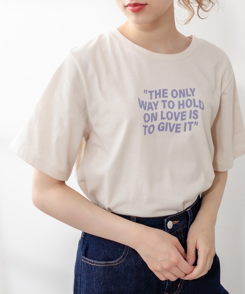 プチプラで大人気のシンプルTシャツに新作が登場! 着回し力抜群でゆるコーデもできるのアソートロゴデザイン。 ■デザイン ・全体的にゆるさのあるでデザインでラインが出すぎず、すっきり見えるTシャツ。 ・プチプラ価格のアソートデザインで色を揃えたくなるアイテムです。 ・INしても出しても着やすい安心感のある丈感です。 ・オフ、グレージュ、サックス、チャコールの4色展開 ・ロゴがアソートで展開なのでシンプル過ぎないデザインです。 ■スタイリング ・スカートでもパンツでも、1枚あると着回し抜群なTシャツです。 ・ボトムや小物を変えるだけで雰囲気が変わるので、着回しが楽しめる1枚です。 ・トレンドのスラックス合わせやデニムでカジュアルに。 ・ロングスカートとやジャンスカの合わせは、カジュアルな印象のTシャツもガーリーにも着ていただけます。 ・秋に向けてカーデやシャツのインナーにもおすす。 ----------------------------- 裏地:なし 光沢感:なし 透け感:ややあり 伸縮性:なし 生地の厚さ:薄手 ----------------------------- model:162cm 着用サイズ:FREE ※ご覧のモニター環境や撮影環境により実際の商品と多少色味が異なって見える場合がございます。 ご理解の程よろしくお願いいたします。
