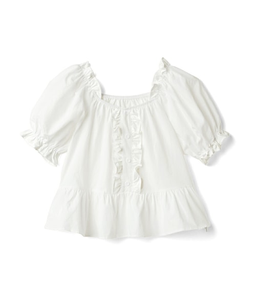 ひらひら揺れるフリルがフェミニンさたっぷりのトップス。 短めの丈はシーズンムードを高める。 袖を下ろせば、オフショルダーとしても使えて嬉しい。 サイドファスナーが付いているので、着脱も楽々。
