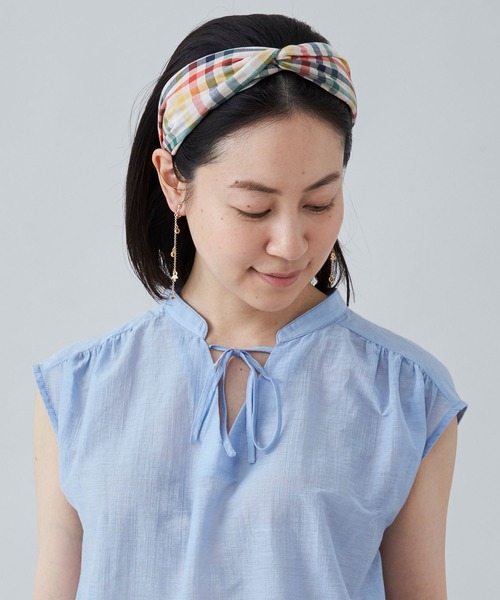 ヘアアクセサリーの定番、ブランドオリジナルのハウスチェックを使用したカチューシャです。シンプルなコーディネートでも、このアイテムを付けるだけでコーディネートを格上げしてくれます。さりげなく傘のチャームがついているのもオススメのポイント。ベージュタイプとネイビータイプの2色展開です。お求めやすいプライスも◎。