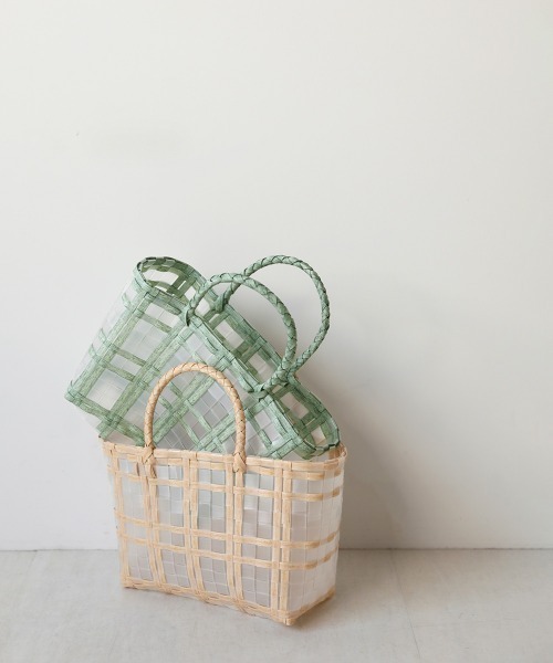●Bab● ■POINT 透け感がシーズンムードを高めてくれるクリア編みバック!ウッド調とクリア素材によって作られたチェック柄のような編みデザインがポイントです。クリア素材で程よく中が透けるので、お気に入りの小物を入れてお出かけを楽しんで頂ける一品です。 ■FABRIC ポリプロピレン素材を使用しているので水に浮かぶほど軽く、またバックの開け口が広いのでもたつかずに中身を取り出すことが出来ます。 ■COORDINATE クリアな透け感が魅力でこれからの季節にピッタリなので、さらにシーズンムードを高めるワンピースやシアートップスと合わせると◎ ※撮影環境により、多少実際のカラーと異なる場合がございます。また、携帯やスマートフォン、パソコンなどの画面上と実物では多少色が異なって見える場合がございます。ご了承下さいませ。 ※画像の商品はサンプルのため、実際の商品と若干仕様が異なる場合がございます。 ※濃色品は、過度な摩擦や濡れた状態での摩擦により、色落ち・色移りをする恐れがあります。 ※この商品は、素材の特性上、洗濯の際に多少の縮みが生じる恐れがあります。洗濯後は形を整えてから干してください。 ※その他お取り扱いに関しましては、商品に付属のアテンションタグをご覧ください。 ★商品のお気に入り登録 再入荷やラスト1点のお知らせ、セール情報などお知らせを受け取ることができます! ★ブランドのお気に入り登録 新商品や再入荷などのお得な情報を受け取ることができますので、是非ご登録ください。