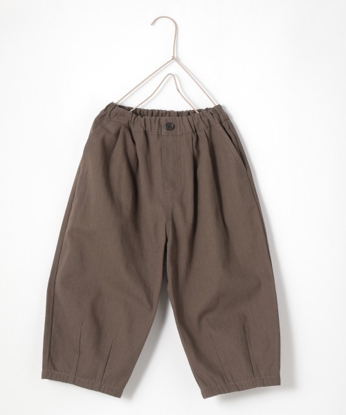 ヘリンボン織のコットン素材スラウチパンツ 春に好調だったスラウチシルエットのパンツが今季も登場! ヘリンボン織のコットンを使用していて、少し秋らしい表情のある雰囲気に。 綿100%なのでお洗濯も簡単で、毎日の遊び着におすすめ! 程よい肉感のある素材なのでシーズンレスで長く使って頂けるパンツです。 ボタンホール付きのゴムが入っているので、少し大きいな・・というときは中のゴムをぐぐっと引っ張って頂いて、ボタンを通せばサイズ調整可能です♪ ※屋外の光や照明の当たり具合で、実際の商品の色味とカラー別画像の色味に違いが発生する場合がございます。 商品の色味は後方の寄り画像をご覧ください。