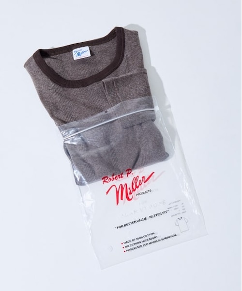 アメリカの老舗アンダーウェアブランドMiller(ミラー)の別注ハーフスリーブTシャツ。アダムエロペでしか手に入らないスペシャルアイテムに仕上げました。ブランドネームがプリントされたパッケージ入り。【Design】タイトすぎず、ルーズすぎない程よいフィット感のハーフスリーブカットソー。袖口を狭くすることですっきりとした印象に。1枚着としても、インナーとしても活躍します。【Material】良質なコットン100%使用。吸湿性や吸水性に富んでおり、柔らかな着心地も◎