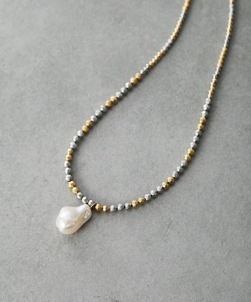 ヴィンテージ感漂うバロックパール調ネックレス。 ゴールドとシルバーのメタルビーズをミックスし、グラデーション仕立てにしたロングネックレスです。大変軽いつけ心地で上半身を華やかに見せてくれます。 トップのプラスチックパールは、流行りのバロックパール調でその輝きはまるで本物のよう! デイリーからオケージョンシーンまで幅広く使える便利なアイテムです。 《ポイント》 ・金具部分はトレンドのマンテルパーツを使用しています。 ・ショートネックレスともレイヤードしやすい長すぎない長さです。 ※CCBとは 樹脂を銅でコーディングしメッキ加工している為、見た目は高級感、重厚感がありながらとても軽く着け心地のよいビーズです。 《お気に入り登録》でお得な情報がいっぱい! ・「商品のお気に入り登録」で入荷情報や、ラストの通知、セール・クーポンの通知などを受け取ることができます! ・「ブランドのお気に入り登録」で新商品や再入荷など、お得な情報を受け取ることができます!