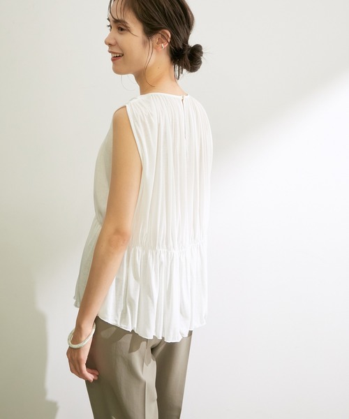 【素材】 ガス焼きの強撚糸を使用した毛羽の少ない繊細な生地です。防シワ性、形状安定性があります。 【デザイン・シルエット】 ギャザーをたっぷりとったペプラムデザイン。襟ぐりの光沢のあるパイピングがポイントです。 【カラー】 何にでも合わせやすいベーシックカラー 【おすすめのスタイリング】 ジャケットインでスリムパンツでオンスタイル。デニムパンツ、スカートでオフスタイルがおススメです。 ---------------------------- 透け感:少しあり 裏地:なし 伸縮性:あり 光沢感:なし 生地の厚さ:薄手 洗濯方法:手洗い ---------------------------- 【モデル情報】 モデル身長:167cm 着用サイズ:38 ※画像の商品はサンプルです。 実際の商品と仕様、加工、サイズが若干異なる場合がございます。 ※室外で撮影している画像は、光の影響で色味が若干異なって見える場合がございます。 ※商品の入荷状況は、店舗までお問い合わせをお願いいたします。 店舗での商品のお取り扱いについて ROPE'の商品は、ROPE'実店舗のみの取り扱いになります。