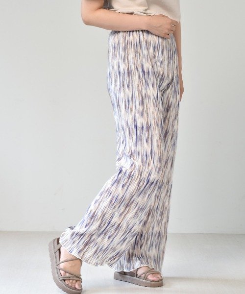 ふんわり揺れるプリーツパンツ 軽やかなプリーツ素材で女性らしさが溢れるトレンド要素をつめたアイテム。 女性らしさがありつつ、パンツスタイルなので動き易く、また軽やかな素材感とウエストゴムで着心地抜群! 柄デザインで存在感があるのでシンプルなTシャツやロンT、シャツ合わせでコーディネートが決まります。 軽い質感を安心して楽しめるのも嬉しいポイント♪ ※撮影環境やご覧のモニター環境によって実際の商品とお色味が多少異なってみえる場合がございます。ご理解の程何卒よろしくお願い致します。