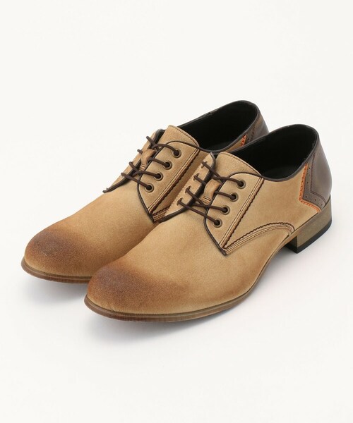 最終の仕上げでアンティーク加工を施し大人な雰囲気に仕上げたファブリックシューズです。長過ぎず、丸過ぎず、プレーンですが、綺麗なシルエットが特長のラスト(木型)を使用してます。かかと部分にはスムース革を使用しアクセントを追加。ソールの反り返りも良く、ナチュラルなウッド調なので爽やかな軽さを感じさせます。シューレースはゴム紐と通常の編み込み紐の2本付けているので好みに合わせて変えて頂けます。