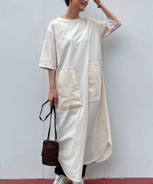 大き目のデニム素材のパッチポケットがアクセントになったワンピース。半袖のカットソー素材で、生地の伸びがよく楽に着られるアイテム。裾はカジュアルなシャツカットになっているので、スニーカーやキャップ、レギンスとも好相性です。アイボリーにはホワイトデニム、キャメルにはブルーデニムのポケットです。【スタッフコメント】DAZAI青山166cm着用サイズ:Fデニムポケットがアクセントになったジャージーワンピース。カットソー生地なのでカジュアルに、楽に着ていただけます。透けないので1枚でも、レギンスやワイドパンツで合わせてもオシャレ。お袖も肘くらいまで長さがあるので安心です。洗濯 :ドライクリーニング伸縮性:あり透け感:なし裏地 :なしTANAKA京阪百貨店モール京橋店158cm【ワンピース】Fサイズデニム素材のポケットがポイントのワンピース。カットソー生地で伸縮性があり、楽に着ていただけます。シャツカットの裾なので、高身長の方はバギー合わせもおすすめ。裏地 :なし透け感:なし伸縮性:あり【商品をお気に入り登録しておきましょう!】気になるアイテムは、♡マークをクリックしておくことで、スムーズにお買い物が楽しめます。・ラスト一点のお知らせ・再入荷のお知らせ・予約商品が店頭に入る際にお知らせ・SALEのご案内※残り1点から完売となった場合でも店舗、ECサイトに商品のご用意がある場合、再入荷する場合がございます。あらかじめご了承くださいませ。※撮影はサンプル商品です。実際の商品と仕様が変更になる場合がございます。ご了承くださいませ。
