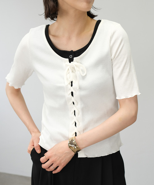 バックレースアップが目を惹くデザイン。 ざっくりと開いた背中が抜け感を演出し同色のレースアップデザインが女性らしさをプラスするテレコ素材のトップス。二の腕をカバーしてくれる丈感も嬉しいポイント◎。伸縮性があり体に程よく馴染みます。どんなボトムとも合わせやすい1枚です。 ■コーディネートアイテム スカート…bt80x04589 ■商品仕様 テレコ生地 裏地…なし 伸縮性…あり 透け…淡色のみあり ポケット…なし 付属品…なし 着脱…プルオーバー ※繊細な生地ですのでお洗濯などのお取り扱いには十分ご注意ください。詳しくは下げ札をご覧ください。 ※着用の際、摩擦や発汗により衣類やバッグ等に色移りの恐れ(特に淡色系のもの)がありますので、十分ご注意下さい。 ※淡色は透けますのでインナーの着用を推奨します。 【ご購入前に必ずご一読下さい】 ※モニタ環境によって、商品の色合いが多少異なる場合がございます。 ※色落ちの恐れがありますので、他のものと分けてお洗濯して下さい。 ※商品をお安く提供させて頂く為、検品後のアイロン掛けは省略させて頂いています。 発送時も簡易梱包の為、お受け取り時にたたみ皺があると思いますがご了承下さい。