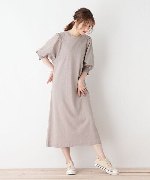 【デザイン】異素材使いのコントラストで着映え度のあるワンピースです。袖を異素材で切り替え、ギャザーをたっぷり入れたデザインが可愛いです。上品さとカジュアル感を併せ持っていて、大人フェミニンな雰囲気で着て頂けます。※ポケットなし【生地感】本体は、コットン(綿)100%のサラリとドライなタッチの生地は、しなやかな肌触りです。袖部分は、ハリのあるタッチが特徴です。※裏地なし【サイズ】大きいサイズ(LL)の展開あり。※04(LL)サイズはWEB限定サイズです。こちらの商品は主に秋に着用いただける商品です。モデル情報:身長163cm B81 W56 H82 着用サイズ:02(M)店舗へのお問い合わせ商品番号:741-53007●製品寸法:02(M):着丈114cm B101cm 袖丈42cm 肩幅30cm W103cm H111cm03(L):着丈115cm B103cm 袖丈42cm 肩幅31cm W104cm H111cm04(LL):着丈116cm B106cm 袖丈43cm 肩幅32cm W105cm H112cm備考: