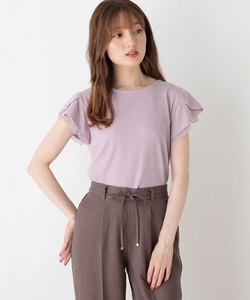 【デザイン】袖にレースを重ねた大人可愛いトップスです。シンプルなデザインで、着回しやすい1枚です。無地2色、ボーダー2色の4色展開です。【生地感】程よい伸縮性のあるリブ編カットソーで着心地も◎しっかりとした生地感で大人女子にもおすすめです♪※ブラック×ホワイト(319)・ナチュラル(350)はやや透け感があるため、インナーの着用をおすすめします。【サイズ】大きいサイズ(LL)の展開あり。※04(LL)サイズはWEB限定サイズです。こちらの商品は主に秋に着用いただける商品です。モデル情報:身長163cm B81 W56 H82 着用サイズ:02(M)店舗へのお問い合わせ商品番号:741-13303●製品寸法:02(M):着丈61cm B82cm 裄丈32cm03(L):着丈63cm B86cm 裄丈33cm04(LL):着丈64cm B90cm 裄丈34cm備考: