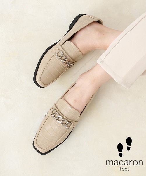 【トレンドなチェーンデザインのローファー】トレンドのチェーンをあしらったシンプルなローファー。かっちりとしたフォルムと人気のスクエアトゥが足元をすらっとスッキリ見せてくれる、高見えできれいめなデザインです。存在感のある太めなチェーンがデザインのアクセントになっています。トレンドライクでおしゃれなデザインながらも、ベーシックなシルエットのローファーなので、デイリーユースからオフィスシーンまで幅広いコーディネートに合わせることができます。・存在感のあるチェーンのトレンドデザイン・人気のスクエアトゥ・長時間履いても疲れにくいインソール【マカロンFootシリーズ】疲れにくいふかふかクッションインソール。歩きやすさ、履き心地にこだわりました。■カラー名:カラー×素材アイボリー:アイボリー×クロコダイル調ブラック:ブラック×スムースブラック系その他:ブラック×クロコダイル調■素材甲材: 合成皮革 底材: 合成底※着用、お取り扱いの際は、商品についている品質表示とアテンションタグを必ずご確認下さい。※商品タグに記載されている商品名がWEBでの表記名と異なる場合があります。※画像の商品はサンプルです。実際の商品と仕様、加工、サイズが若干異なる場合がございます。 ※照明の関係により、実際よりもやや明るく見える場合がございます。またパソコンなどの環境により、若干製品と画像のカラーが異なる場合もございます。予めご了承くださいませ。 【お気に入り登録】してお得な情報をCHECK!!・「商品のお気に入り登録」で再入荷通知や、ラストの通知、セール通知も受け取ることができます。・「ブランドのお気に入り登録」で新商品や再入荷など、お得な情報を受け取ることができます。__________________________________________________________