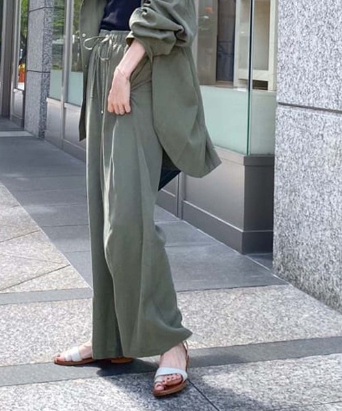 ゆったりシルエットながら綺麗見えするリラックスパンツ ●デザイン 生地の柔らかな落ち感とヴィンテージ感が特徴のリラックスパンツ。 ストンとしたワイドストレートシルエットが大人のこなれ感を演出してくれます。 トップスをインしてもアウトにしてもバランスよくまとまります。 ウエストは総ゴムでリラックスした履き心地と、ドロスト紐入りで調整可能なのも嬉しいポイント。 ●おすすめコーディネート シンプルにTシャツなどのカジュアルなコーデはもちろん、サマーニットやシャツ合わせなどキレイ目コーデにも使えて便利なアイテム。 ◆同素材でこちらもございます。セットアップでも着ていただけます。 ストーンウォッシュオーバーシャツ(RDZ1011704A0002) ●素材 再生繊維(セルロース)100% ・程よい光沢 ・柔らかな風合い 洗濯方法:手洗い 透け感:なし 光沢:ややあり 裏地:なし 生地の厚さ:普通 伸縮性:なし ウエストゴム:あり ファスナー:なし ポケット:あり 【スタッフ着用コメント】 《AMA》 身長:160cm/普通/普段サイズ:M/着用サイズ:38 サイズ感:程よいゆとりで足のラインがひびきにくいです。 素材感:さらりとした素材感で気持ちいいです。 着心地:ウエストがゴム仕様なのとゆとりのあるサイズ感なのでノンストレスでとても着心地がいいです。 《saki》 身長:159cm/普通/普段サイズ:M~L/着用サイズ:38 サイズ感:ウエストは総ゴムで、足のラインがひびきにくいゆとりのあるストレートシルエットです。 素材感:落ち感があり、程良く光沢があるセルロース100%のお素材です。 着心地:さらりとした肌触りが良く、ストレスフリーな着心地です。 《momo》 身長:158cm/普通/普段サイズ:M/着用サイズ:38 サイズ感:股上が深めでフラットシューズでも問題なく履けました。 素材感:ワイドシルエットでも光沢のある素材感でスッキリ履ける印象です。 着心地:ウエストのゴムが幅広なのでお腹への圧迫感もなく快適でした。 《YUKA》 身長:158cm/普通/普段サイズ:M/着用サイズ:38 サイズ感:足のラインも拾わずストンと落ちるシルエットです。ヒールで合わせると引きずらない丈感です。 素材感:柔らかい素材感で、サラッとしています。 着心地:ウエストがゴムなのでとても楽にきれいに履いていただけます。 ============================== 【注意点】 ※画像の商品は光の照射や角度、お使いのモニター環境により、 実物と色味が異なる場合がございます。 あらかじめご了承下さいませ。 ============================== 【お買い物をもっと便利に楽しく♪】 『♡』をクリックでお気に入り登録 ・「商品のお気に入り登録」で・・・ ラスト1点や再入荷の通知が届きます。 登録して頂いた商品だけが対象となる、あなただけのタイムセールが開催されることも! ・「ブランドのお気に入り登録」で・・・ 新商品や再入荷など、いち早くブランドのお得な情報を受け取ることができますので、ご登録をおすすめします! ==============================