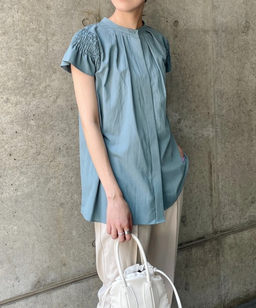 程よいフェミニンさを感じる2WAYブラウス 肩部分に入ったシャーリングがほんのりフェミニンな雰囲気に。 ボタンを後ろにしても着られ、2WAYでお楽しみ頂けます。 ・オンオフ問わずに着られるデザイン ・オフィススタイルにもおすすめ ・フレンチスリーブがすっきり涼し気な印象に ・アウトでもバランスの取りやすい着丈感 ・ワイドなボトムスはインして着るのがおすすめ ・サロペットなどのインナーにも◎ ▼手洗い可能 ※撮影場所やお使いのモニター環境により若干お色味が異なる場合がございます。 特にロケの撮影では明るく見える傾向にございます。 ※商品はサンプルで撮影をしております。若干の仕様が変更になる場合がございますので予めご了承の上ご注文くださいますようお願いいたします。 ▼商品のお気に入り登録 完売カラーの再入荷通知や、ラスト1点の通知、セールの通知も受け取ることができます。 ▼ブランドのお気に入り登録 新商品や再入荷など、いち早くブランドのお得な情報を受け取ることができます。