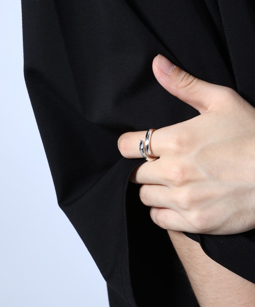 ツイストデザインを施したラップ型リング。 ミニマルに仕上げたソリッドなリング。 ラップ状に作られたシルエットに、ツイストさせ立体感を増した表情に仕上がっています。 サイズ:およそ17号のフリーサイズとなります。