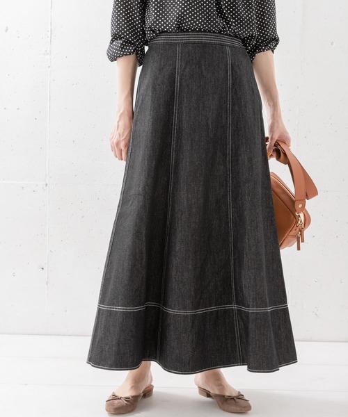 配色ステッチを効かせたデニムスカート。腰回りはすっきり、裾にかけて広がるフレアシルエットが女性らしい一着。後ろにゴムを配しているので着心地も楽々です。※この製品は、柔らかい生地を使用しています。激しい運動や過度な力が加わると、滑脱(縫い目が滑って開いたり、縫いしろが抜ける)する場合があります。※この商品(インディゴ)は、インディゴ染料を使用しておりますので、染色の特性上、着用時の摩擦や汗や雨等で濡れた場合色落ちし、他の衣料に色移りする事がありますのでご注意下さい。※その他お取り扱いに関しましては、商品に付属のアテンションタグをご覧ください。※商品画像は、光の当たり具合やパソコンなどの閲覧環境により、実際の色味と異なって見える場合がございます。予めご了承ください。※商品の色味の目安は、商品単体の画像をご参照ください。▼お気に入り登録のおすすめ▼お気に入り登録商品は、マイページにて現在の価格情報や在庫状況の確認が可能です。お買い物リストの管理に是非ご利用下さい。-----------------------------透け感:なし伸縮性:なし裏地:なし光沢:なしポケット:なし-----------------------------