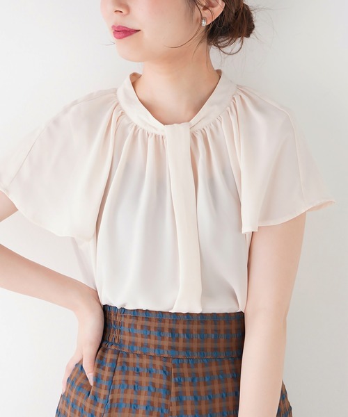 【2021AW natural couture】 とろみ感のある素材がふわりと揺らめく ■Design ふんわり広がるフレアスリーブが上品なブラウス。 二の腕カバーにも貢献する袖シルエット◎ センタータックが今年らしいクラシカルな雰囲気に仕上がりました。 オンオフ問わず幅広く活躍し、コーディネートにクリーンな表情をプラスしてくれるアイテムです。 ■Styling カジュアルにデニムを合わせたり、大人っぽくフレアスカートなどを合わせても◎ 今季トレンドのスタイリングも楽しめます。 ■Fabric 上品な素材感と軽やかさが特徴で、柔らかな雰囲気が出ます。 落ち感がありストンとしたシルエットですので体のラインを拾いづらく細見えする素材です。 =============== 透け感:オフホワイト少しあり 裏地:なし 伸縮性:なし 光沢感:なし 生地感 :しなやかな生地感 =============== 【お気に入り登録でお得な情報がいっぱい】 ・「商品のお気に入り登録」で再入荷通知や、ラスト1点の通知、セール通知をいち早く受け取ることができます。 ・「ブランドのお気に入り登録」で新商品や再入荷など、お得な情報を受け取ることができます!