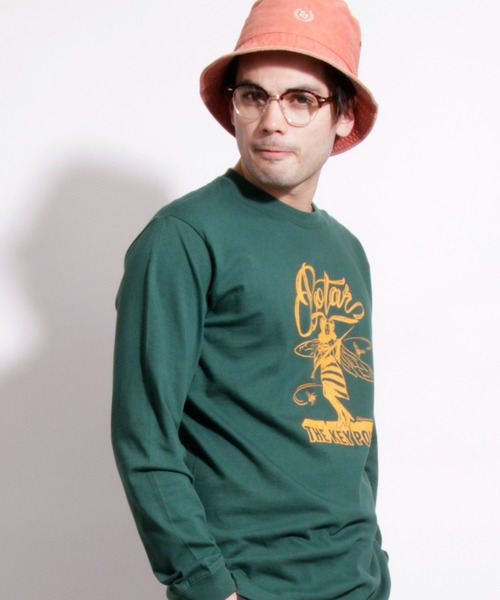 女王蜂をイメージしたグラフィックデザインのロンTee。 自然界において、脅威の強さを持つスズメバチ。その大群を纏めて労働を強いる女王蜂を擬人化し、強く逞しく、時には色気で男達を手懐ける様子が描かれています。 グラフィックは、ピンストライパーやカスタムペインターなど、多岐に渡り活躍しているHIGH JUMPER氏によるもの。 氏の得意とする、力強さの中にも繊細さを感じ取れる独特のタッチが光るグラフィックデザインに仕上がっています。 BODYには、ベーシックなサイズとシルエットで安定感があり、伸びにくい首元と、ハリと強度のある生地感が特徴の5.6ozセミコーマのクルーネックを採用。 袖口はリブ仕様で、ロンT独特の野暮ったさを解消しています。レギュラーなボックスのサイズ感なので年間で使いやすく、1枚で着たりインナー使いとしても活躍できるアイテムです。