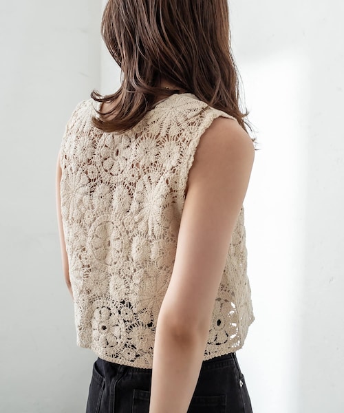 一枚でもレイヤードでも着れてコーデの幅を広げるアイテム!商品ポイント・細部までこだわった編み目が魅力的な一枚。・短めの丈感も合わせやすく、こなれた印象に。・これからの季節、キャミソールと合わせて一枚で着ることもできます。・シンプルなTシャツに合わせるだけで、レイヤードスタイルが楽しめます。スタイリングポイント・華やかなデザインのトップスのため、シンプルなボトムスと合わせるのがおすすめ。・簡単にできるレイヤードスタイルは上級者見え。※洗濯、取り扱い手洗い可漂白不可タンブル乾燥不可ドライ石油系(弱い処理)------------------------------------------------------裏地:なし伸縮性:ややあり光沢感:なし生地の厚さ:ふつう------------------------------------------------------------------------------------------------------------商品のお気に入り登録➡ お気に入りアイテムの値下げ・再入荷・在庫1点などの通知を受け取ることができます。ブランドのお気に入り登録➡ 新商品や再入荷、セール、クーポン配布などお得な情報を受け取ることができます。※サイト上のカラー名と、お届け商品に記載されているカラー名が異なる場合がございます。※商品の色味は、撮影場所や光のあたり具合などにより色味が違って見える場合が御座います 。また、お客様のお使いのPCのモニター環境などにより色味が違って見える場合が御座います。予めご了承の上ご注文下さい。※ご注文いただいた予約商品のお届け時期の確認は、注文履歴ページより行えます。------------------------------------------------------