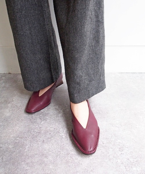 2021 - Autumn - ≪すっきりしたきれいなラインのスクエアトゥパンプス≫ 人気のパンプスに秋冬の新色が登場。 トゥ部分のアウトステッチが目を惹くオシャレなデザインで、Vのカッティングが足をきれいに見せてくれます。 全体的にモードなシルエットとスクエアトゥで、抜け感のある洗練された大人の足元を演出してくれます。 グレーや、グレープに近いワインカラーの深すぎないカラーリングはオールシーズン使いやすいです。 ソフトレザーを使った、足当たりのよいやわらかな履き心地で、履いていくうちにそれぞれの足に馴染んでいきます。 モードなデザインの変形ヒールも、ほどよくスタイルアップできるローヒールで安定感があり歩きやすいです。 幅狭さんや甲うすさん、足ほっそりさんでもフィットしやすいです。 コーデのポイントは… ワンピースやスカート、パンツスタイルなど何にでも合います。 新色のグレーやワインは、茶色のスタックヒールでナチュラルカラーのコーデにも合わせやすいです。 ブラックはヒールも黒く、通勤用・お仕事履きにもオススメ。 シンプルだけど少しエッジの効いたデザインで、ボリュームのあるボトムスともバランスが取りやすい今年らしい一足。 【片足の重さ】約 195g スタッフ着用レビュー <スタッフ・Natsumi.I> 足長(実寸):23.3cm 足の形 :エジプト型 ワイズ :D(標準) 足幅も甲の高さも標準です。くるぶしが低めで、外反母趾気味です。 普段は23.5cmを着用しますが、スニーカーやブーツは余裕をもって24.0cmを着用します。 23.5cmを靴下で着用しました。足長もワイズもちょうどいい感じです。 ソフトな足当たりで、裏も革なので、履いていくうちにさらに足に馴染んで行きそうです。ふつうの厚みの靴下でぴったりなので、ストッキングや素足で履く場合はワンサイズ下でもいいかもしれません。 - aprés(アプレ) - 日本の職人が丁寧に作りこんでいくアプレの革靴は、履き込むほどに足になじみ、時間の経過とともに風合いが変化していき、気が付けば自分だけの“オリジナルな一足”になっていきます。 ■商品について 画像の商品はサンプルです。 実際の商品と仕様、加工、サイズ、素材が若干異なる場合がございます。予めご了承ください。 トップの画像は、光の具合で色味が違って見える場合があります。商品の色味は、スタジオ撮影の画像をご参照ください。 サイト上のカラー名と、お届け商品に記載されているカラー名が異なる場合がございます。 厳選された素材を使用しておりますが、雨に濡れたり、汗による湿気、乾燥状態での摩擦により革が色落ちし、薄い色の衣服、靴下などに色移りする可能性がございます。ご使用の際には十分ご注意くださいますようお願い致します。 ■返品について 商品の性質上、ご着用後のご返品については お受けすることができません。あらかじめご了承ください。修理依頼は、カスタマーサポートセンターお問い合わせ「ご注文に関するお問い合わせ」までご連絡ください ◆気になる商品は「お気に入り」登録を◆ ハートマークをクリックし、お好きなカラーを選んでお気に入りに登録すると入荷情報や残り1点の通知、完売カラーの再入荷、セール情報などを受け取ることができます。