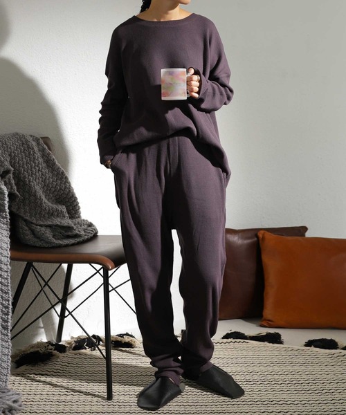柔らかオーガニックコットンのワッフル生地で着心地もお洒落も◎ ちょっとそこまで。ご近所外出もOK! リラックス、着心地、お洒落、すべて◎ プライベートもラクチンにちょっとそこまでも、リモート通話だって大丈夫! ラフなシルエットに見えてしっかりと考えられたデザインにオーガニックコットン100%の生地で着心地バツグン。 肌馴染みの良いニュアンスカラーで細部までお洒落に拘りました。 ≪DETAIL≫ ・ゆるっとドロップショルダーのトップスでこなれ見せ。 ・前後差のあるラウンド裾にしたことでお洒落印象に。 ・程よいUネックラインですっきり見せ。 ・ボトムスはウエスト後ろゴム仕様でラクチン。 ・太ももはゆるっとテーパード型。 ≪FABRIC≫ ・オーガニックコットン100%使用。 ・柔らかい肌触り。 ≪COLOR≫ ベージュ・カーキ・ネイビーの3色展開! ≪SIZE≫ フリーサイズ! 【こちらの商品は100%オーガニックコットンを使用しています】 オーガニックコットンとは化学肥料や殺虫剤、除草剤などの農薬を2~3年以上使わない農地で栽培され、認証機関で認められた綿花です。 地球環境と生産者の健康に配慮したオーガニックコットンを選択することは私たちと子供たちの未来を守ることにもつながります。 antiquaでは『世界の子供達の未来へつながる支援』を行っています。