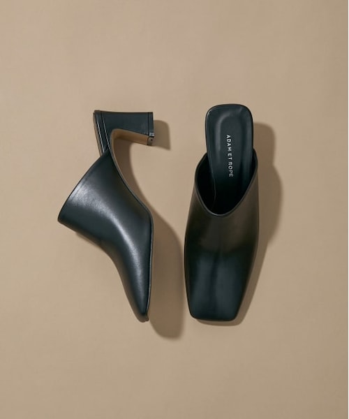 ◆2021-22秋冬◆ADAM ET ROPE' FEMME【Material】アッパーに、キップ調の牛革を使用。本革ならではの上品なツヤと発色の良さで足元を格上げしてくれるのが魅力。【Design】ユニークなフォルムのヒールを取り入れた遊び心あふれるデザインを、上質なレザーで仕立てた、大人にこそ履いていただきたいミュールサンダル。シンプルながらも印象的なミュールは、女性らしくモードな足元に仕上がる一足。履くほどに足に馴染むレザーのアッパーが、甲を包み込んでくれるので、履き心地