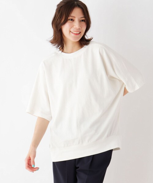 【デザイン】 さらっとしたタッチが気持ちいい、ドルマンプルオーバー。 ところどころにステッチを入れ、こなれたデザインも今年らしく、 カジュアルダウンしてタウンユースにぴったりです。 ヒップが隠れる丈や、二の腕をカバーするドルマンスリーブなど、 体系カバーも叶えてくれる優秀アイテムです! 【生地感】 ひんやり加工の施されたきれいな表面感のカットソー生地を使用しています。 とてもきれいで上品さのある素材で、プチプライスは衝撃的です!! ※ホワイト(002)はやや透け感があるため、インナーの着用をおすすめします。 こちらの商品は主に夏に着用いただける商品です。 モデル情報:身長167cm B78 W62 H88 着用サイズ:00 店舗へのお問い合わせ商品番号:C62-13014 ●製品寸法: 00(FREE):着丈61cm B136cm 裄丈51cm 備考: