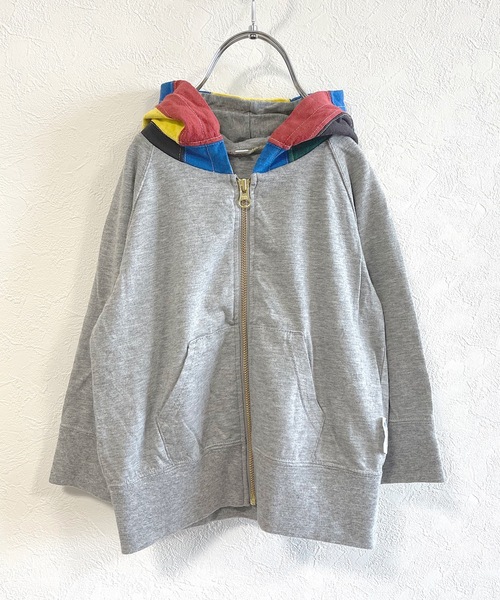 【JIPPON】 made in JAPAN SDGsへの取り組みから誕生したアップサイクル商品の第3弾! カラフルなフードがポイントの可愛いパーカー♪ こちらのアイテムは、いろんなシーンで大活躍間違いナシ!! ナチュラルテイストの無地ボディに、 フード部分が様々なカラーの余り生地でアップサイクルしたパッチワーク☆カラフルなフードでコーデも一気に華やかになります♪ ジップアップなので着脱も簡単♪ 季節の変わり目にはモチロン♪ 冷房対策や夏場のレジャーにもオススメのアイテムです!! ■MARKEY'Sの思い■ 弊社では、日本製の商品を作り出す工程で、 裁断の際に品質に何の問題もないのに最終的に捨ててしまう余り生地たちを、 再び新たなお洋服として蘇らせよう!という思いからはじまった取り組みです。 微力ながらでも、一歩ずつ。。。 【UPCYCLE/アップサイクル】 アップサイクルとは、リサイクルやリユースとは異なり、 もともとの形状や特徴などを活かしつつ、 不要だと思うものを捨てずに新しいアイデアを加える事で、 別のモノに生まれ変わらせること。 ※こちらはパッチワークデザインの為、1点ずつパッチワーク部分のカラーの組み合わせが異なります。 大変申し訳ございませんが、お選びいただく事が出来ませんので予めご了承くださいませ。