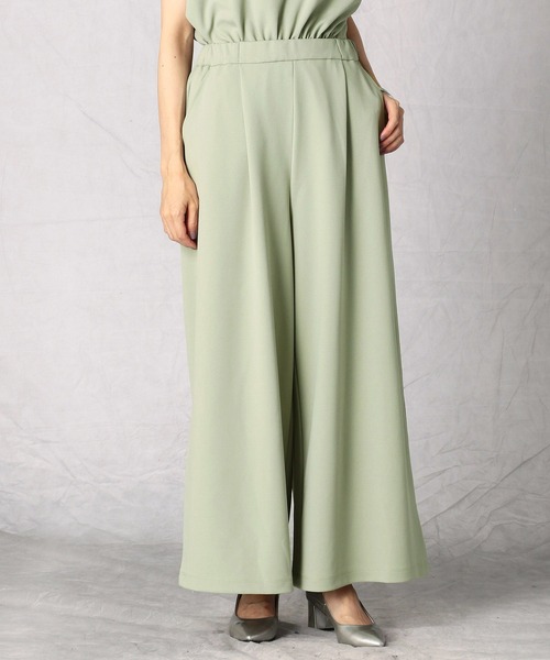 《素材》ジャージー素材で作った、着心地の良いワイドパンツです。実は、布帛(ふはく)のジョーゼットに見立てて作ったジャージー素材なので、ジャージーの伸縮性と、布帛特有のきちんと感を併せ持っています。《デザイン》左右の前のタック部分から、後ろをゴム仕様で作った快適な履き心地。タックとタックの間には、ギャザーを寄せず、ブラウスやシャツの裾をタックインして着用できます。そのためオールゴム仕様よりも、きちんと感がアップ。落ち感のある素材が相まって、ワイドなシルエットを美しく演出します。《セットアップ》同素材のブラウス (商品番号:80-15IT04)と合わせて、セットアップとしてお召しいただけます。※在庫がない場合もございますので、予めご了承くださいませ。※画像の商品はサンプルとなりますので実際の商品と仕様、加工、サイズが若干異なる場合がございます。※こちらの商品はFIVE FOXes独自の採寸方法となっています。本サイトのサイズガイドと採寸方法が異なる場合がありますのでご了承ください。