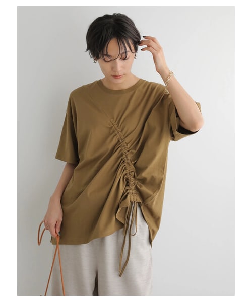 ドローストリングでニュアンスチェンジできるプルオーバー。 定番のラウンドネックは顔まわりをすっきりと見せます。 肩を落としたゆったりシルエットがリラックス感をメイク。 スキニーパンツやワイドパンツ、フレアロングスカートなど、合わせるボトムスを選ばない優秀なアイテムです。